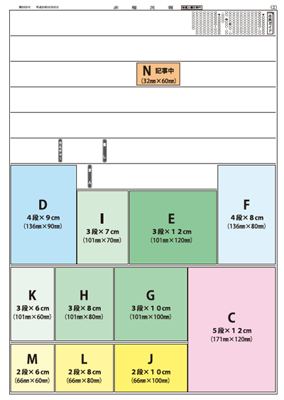| ※この図は主な広告スペースの大きさを比べられるように示したものです。このとおりの掲載位置になるという意味ではありませんので、ご注意ください。 |