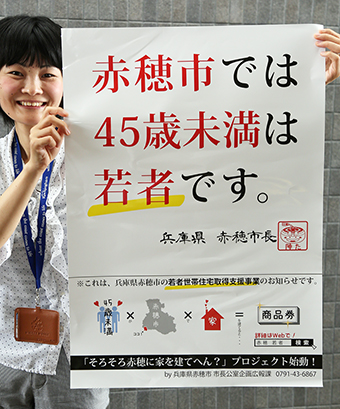 同制度では、本人または配偶者が満45歳未満の2人以上の世帯が赤穂市内で住宅を新築または中古物件を購入した際、20万円分の商品券を贈呈する。申請日の時点で中学生以下の家族がいれば1人につき5万円が加算される。