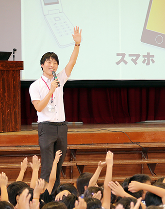 学生ボランティアが安全なネット利用を呼び掛けた出前授業
