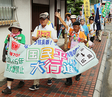 8月4日の広島市到着を目指して赤穂市を通過した平和大行進