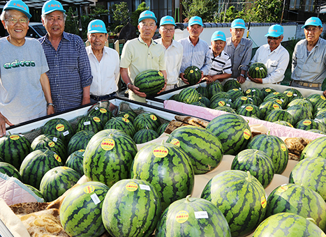 今年も甘くて食感のよい果実が実った大津スイカ