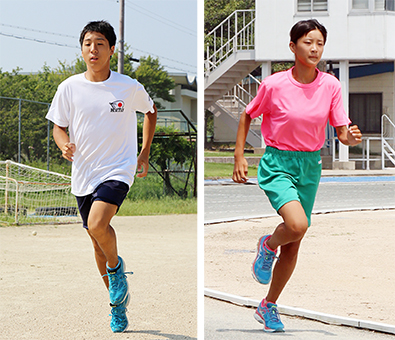 全中陸上で2種目に出場する小林朝さん(右)と共通男子400メートルで50秒台を狙う鈴木寿基君