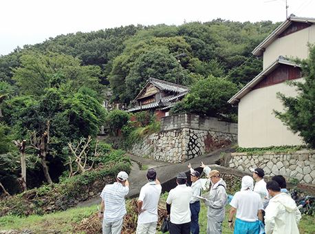 大規模太陽光発電施設の事業予定地周辺を視察した御崎地区自治会連合会の役員=同連合会提供