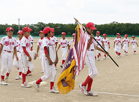 優勝旗を手にグラウンドを一周する御崎野球少年団