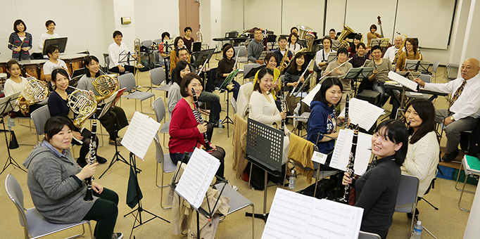市内在住の吹奏楽愛好家たちが集まって平成18年に結成。3年前に常任指揮者に就任した佐々野充さんの大学時代の恩師だったつながりで多戸氏を客演指揮に招いた。