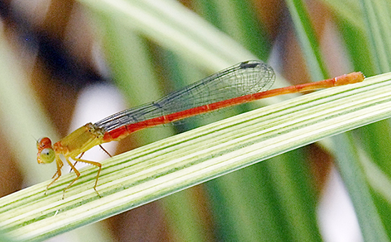 ▼希少トンボ、ベランダで羽化=準絶滅危惧種ベニイトトンボが加里屋の医師、三木宏志さん(58)方で羽化。