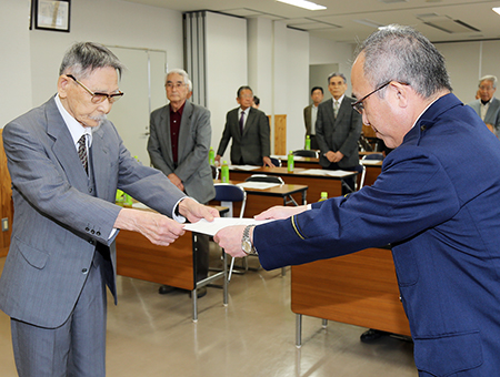 加里屋中洲の同署で行われた委嘱式で濱田純司署長は「事件・事故のない社会の実現のために、コミュニティリーダーとしての役割を期待しています」とあいさつ。任期は平成30年3月末まで2年間で、原清連合会長は「地域の安心・安全のために貢献していきたい」と抱負を語った。