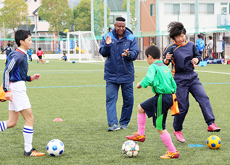 ソウル五輪ブラジル代表FWで背番号10をつけ、現在はクルゼイロECの育成本部U17コーチを務めるハミルトン・デ・ソウザさん(47)らスタッフ6人が来穂。高学年はトラップとパス、低学年はドリブルを中心に練習を行った。