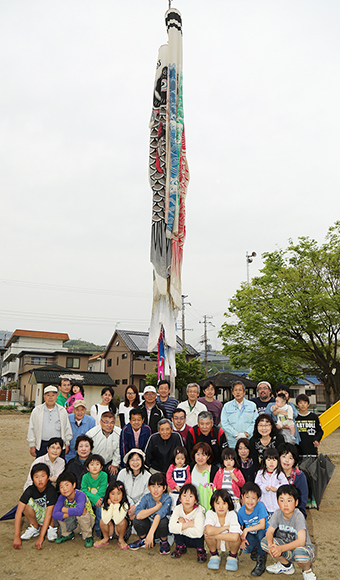 「子どもたちが元気に育ってくれるように」と、平成2年に地区の老人会の発案で始まり、毎年欠かさず続けてきた自治会行事という。支柱はヒノキ材で高さ13・4メートル。先端に矢車飾りが付いている。