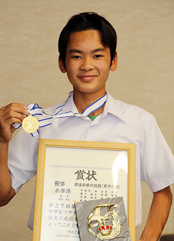 大会は今年3月に三重県伊勢市であり、開催市を加えた48チームがダブルス3試合のトーナメントを戦った。高田君のペアは兵庫の切り札として準々決勝から出場。決勝までの3試合をすべて勝利し、チームを優勝に導いた。