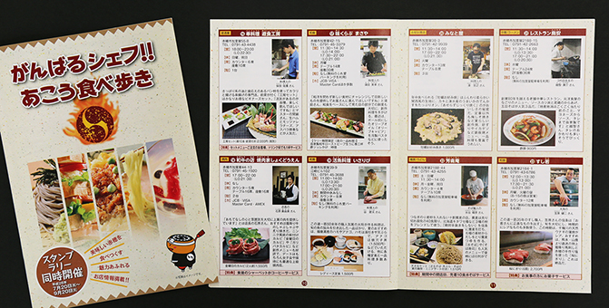 店主や料理人にスポットを当てて飲食店を紹介している小冊子『がんばるシェフ!!あこう食べ歩き』