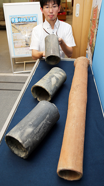 有年考古館で開催中の特別展「発掘された上水道」。一部の展示物は実際に触れることができる