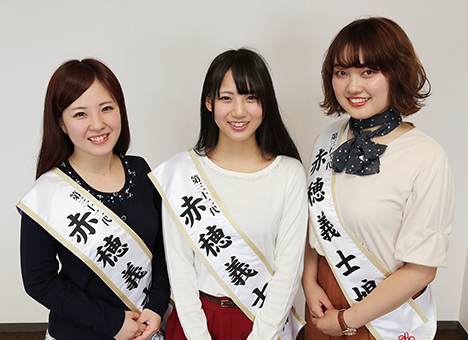 第32代赤穂義士娘に選ばれた=右から=薮本真実さん、芝田朱里さん、塩江祐心さん