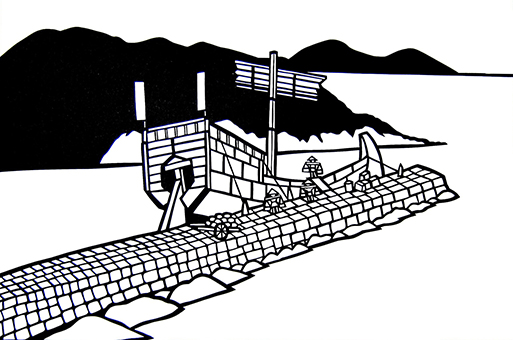 その船をつないでおく場所も必要だった。そこで、塩田の近くの海岸に、塩を運び出す船が出入りしやすいような船溜まりを作った。石を積み上げ防波堤を築いた。波が入ってこないように工夫した。船の高さと堤防の高さを合わせて、塩を運び込みやすいようにした。この船溜まりのおかげで、船が座礁する恐れもなく、安心して船をつないでおけたのだ。そして大量の塩を運び出すことが出来るようになった。