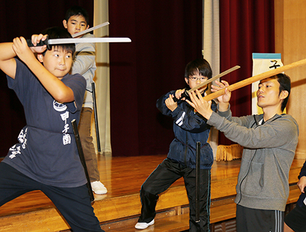 ピッコロ劇団は毎年演技指導を協力しており、今年も団員2人が舞台での立ち位置や間合いなどを具体的にアドバイス。見せ場となる殺陣は特に念入りに稽古した。指導した劇団員の山田裕さん(42)は「きょう伝えたことをヒントに、いっぱい練習して、当日は演じることを楽しんで」と励ました。