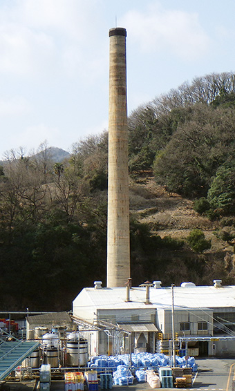 同社では、にがりを製造する工程で塩化マグネシウムを煮詰めるプラントの煙道として活用していたが、今年1月にLNGを燃料とする新プラントに更新したため煙道が不要に。老朽化も進んでいることから安全面を考えて解体撤去を決めた。