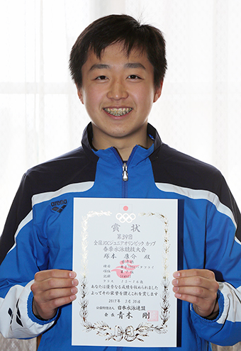 水の抵抗を受けにくい泳ぎを目指して昨夏からフォーム改造に取り組んできた塚本君。その成果が現れ始めたといえるが、スピード持久力やターン技術など「まだまだ課題は多い」という。