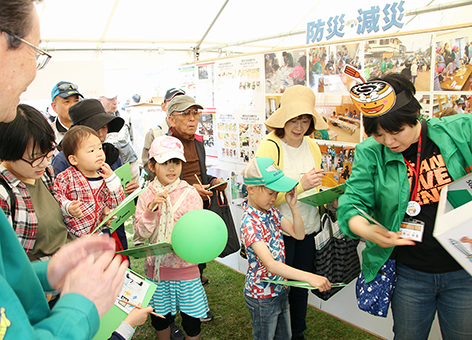 子どもたちも興味をもって来場した「赤穂防災士の会」の展示ブース=同会提供
