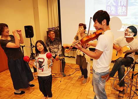 バンド活動でギターを演奏している三島正嗣さん(53)=加里屋中洲=が「聴覚に障害がある人にも音楽の楽しさを伝えたい」と企画。賛同した音楽仲間が集まった。当日は「抱っこスピーカー」が音をどういった振動に変換するのかデモンストレーションし、「世界に一つだけの花」「未来へ」などを演奏する。
