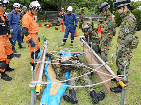陸上自衛隊と実施した救助活動訓練
