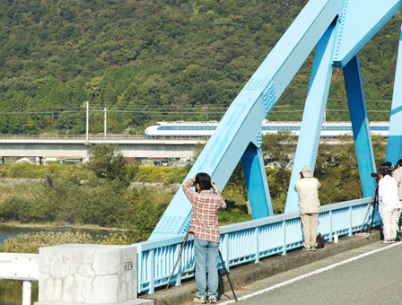 実は同橋は鉄道ファンの間で「全国屈指の新幹線撮影スポット」として有名。川面に映る車体を写すことができるのは岡山の吉井川とここぐらいで、JR西日本のCMにも使われたことがある。