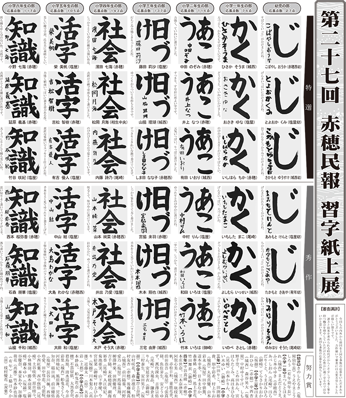 ▽秀作=山本 純菜(赤穂西)井出 乃愛(塩屋)木戸 そう大(赤穂)