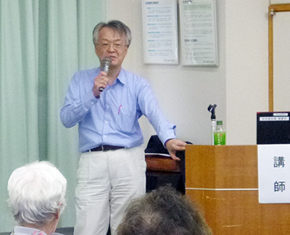 認知症セミナーで講演する深井光浩院長