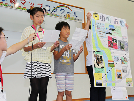 西有年の小学3年、陰山莉世さん(9)は弟の仁君(6)と地域の公園をまとめた「レッツゴーこうえんマップ」を発表。莉世さんは3年連続の応募で「いろんなところを回って地図にまとめるのは楽しい。弟と一緒に仲良く作りました」と笑顔で話した。