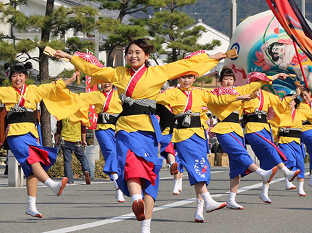 関西福祉大学の2回生、小野田理沙さん(19)=備前市=は所属する学内よさこいサークル「天舞」の仲間と参加。「みんなで一緒に声を出して踊るのが最高に楽しい」と笑顔を見せた。