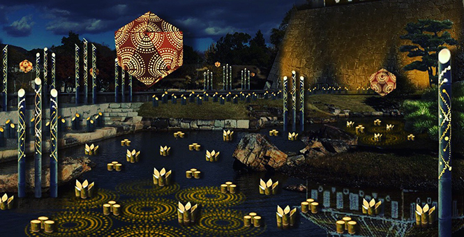 「自分たちのまちは自分たちの手で照らそう」をコンセプトに延べ約300人の市民ボランティアが約2カ月かけて準備。義士祭当日の14日まで毎夜点灯し、国史跡・名勝を幻想的に彩る。