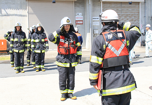 平野勝則・赤穂消防署長は「危険物は一旦事故が発生したら自然や環境に大きな影響を及ぼす。今後も訓練を徹底したい」と訓示。同社の末永節生工場長は「万が一を想定してこれからも訓練に取り組みたい」と気持ちを引き締めた。