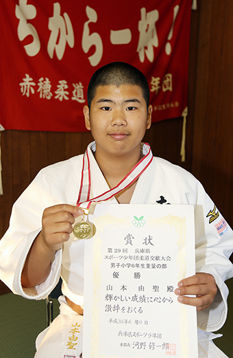 小1で身長140センチだった山本君は母親の勧めで9歳から柔道を始めた。現在の体格は身長172センチ、体重82キロ。中高生や社会人に胸を借りて稽古している。「どの試合もベストを尽くして、悔いのない柔道をする」と語る様子には小学生とは思えない落ち着きがある。指導する東光洋団長(45)=北野中=は「どんな相手でも自分から前に出る積極性が持ち味。これからが楽しみ」と将来性に期待する。