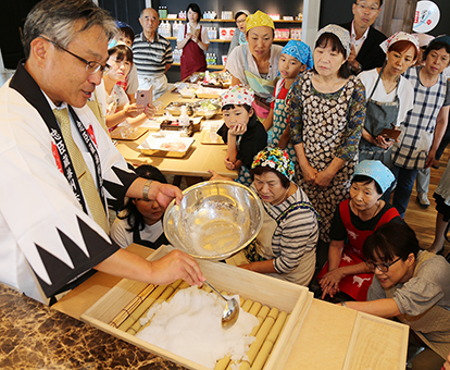 にがりは海水から塩を採取した後に残る液体。マグネシウムを主成分として大豆たんぱく質を固める働きがあるため、古くから豆腐の凝固剤に用いられている。同社は業務用のほか栄養機能食品として一般向けにも商品を販売し、国内トップシェア。「にがり」を漢字で「苦汁」と書くことにちなんで、今年から日本記念日協会が「9月10日」を「苦汁(にがり)の日」に認定したことから、「にがりの良さを知ってもらう機会に」と料理教室を企画した。