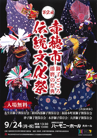 市民に伝統文化の重要性を再認識してもらおうと、「地域伝統文化保存事業実行委員会」(委員長=尾上慶昌教育長)が主催する。市内で伝承されている獅子舞を5年間で紹介するイベントの2年目で、小ホールで催した昨年は観客が入りきらないほどの盛況だったことから、今年は会場を大ホールに移して開く。
