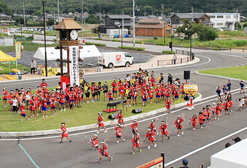 地元児童らの演舞備などで祝った有年駅北まちづくりイベント