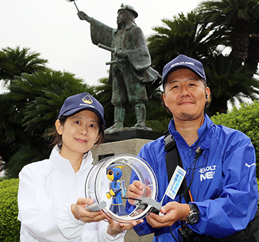 ギネス世界記録挑戦へ向けて赤穂を通過した「エボルタくんNEO」
