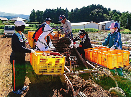 被災した農家でサツマイモの出荷作業を手伝った生徒たち=赤穂高校提供