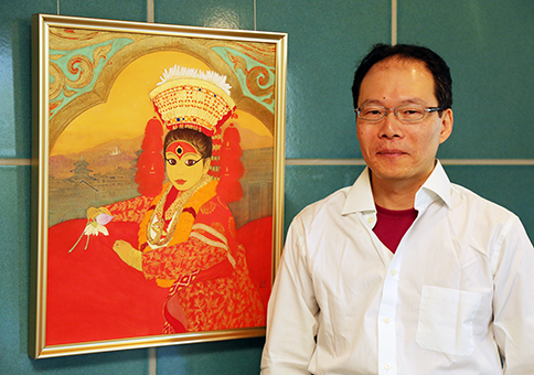 今展ではネパールのクマリ(生き女神)を描いた「デオ・マイジュ(小さな女神)」(F12号)、ベトナムの少数民族衣装が色鮮やかな「美しき村」(F30号)など代表作25点とこれまでに手掛けた絵本原画5作品すべてに加え、千種川や丸山海岸など赤穂のスケッチ画を紹介。大学時代に国重要文化財建造物の「孫文記念館」や「旧岩崎邸」などで復元に携わった手製高級壁紙「金唐革紙」4点、からくり人形師の伯父・後藤大秀氏(岐阜県伝統文化継承功績者)が制作した人形3体と能面5点も展示する。