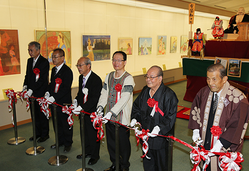 オープニングセレモニーで後藤氏は「幼少期に赤穂で見た風景や自然が私の感性のベース。作品を描くときも常にふるさとの風景を思い浮かべている」と語り、「この特別展を励みにさらに頑張って良い作品を描いていきたい」とあいさつした。「大垣祭保存会中町布袋会」のみなさんによる、からくり人形実演も披露され、集まった約150人の来場者から大きな拍手が送られた。