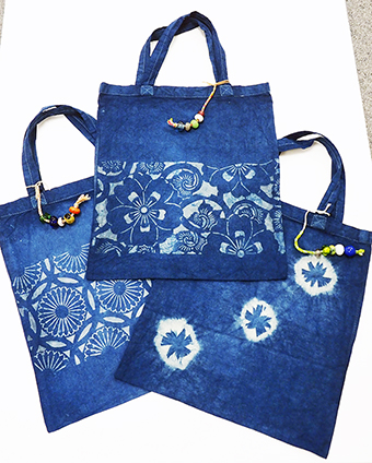 体験教室で制作する形藍染バッグのサンプル=同館提供