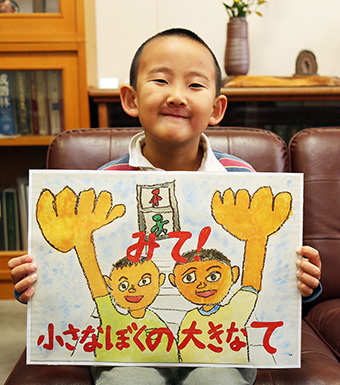 兵庫県交通安全ポスターコンクールで最優秀賞に選ばれた上山晃史郎君