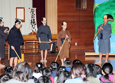 ▼「有年物語」ラスト公演=有年小学校6年生児童が地域に伝わる民話を題材に演じる創作劇。カリキュラム変更のため、平成17年度の初演から13回目で最後のステージに。