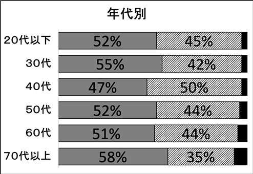 性別では男女とも牟礼氏が過半数。年代別でも牟礼氏が70代以上(58%)をはじめほとんどの世代で上回った。明石氏は40代のみリード。