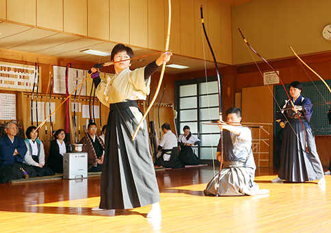 同会は毎月1回、同体育館の弓道場で月例射会を開催。1月は初射会として実施している。