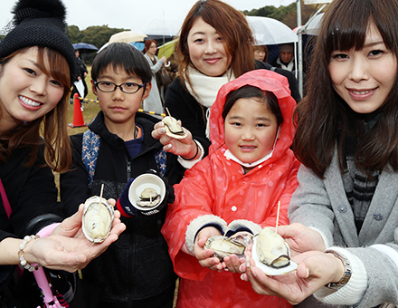 公園北東寄りの赤穂広場で午前9時〜午後2時に開催。ステージでは和太鼓演奏や歌謡ショーなどで会場を盛り上げ、上位10人にカキをプレゼントする「かき重さあて大会」(正午まで受付)、賞品が当たるガラガラ抽選会(先着150人)もある。