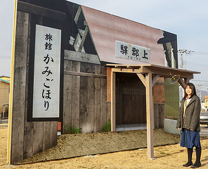 ドラマの駅舎セットを再現した「むかしの上郡駅」パネル