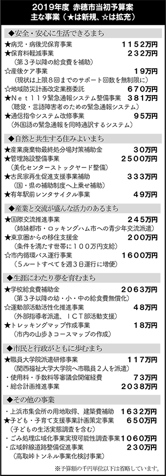 学校給食費一部無償化、市内循環バス増便など〜2019年度当初予算案