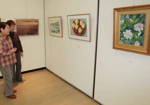 市立図書館ギャラリーで開催中の赤穂美術協会小品展