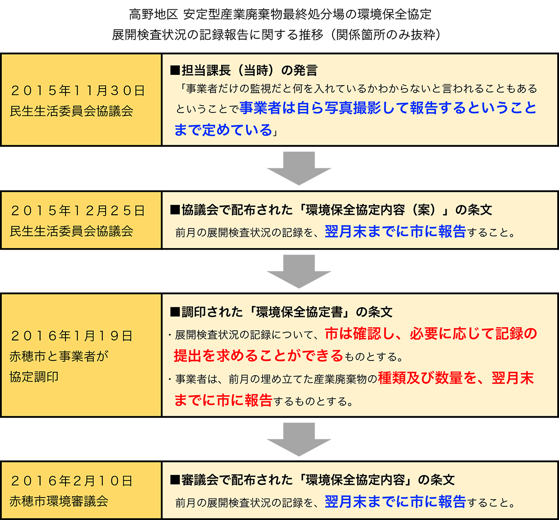高野地区安定型産業廃棄物最終処分場の環境保全協定 展開検査状況の記録報告に関する推移(関係箇所のみ抜粋)