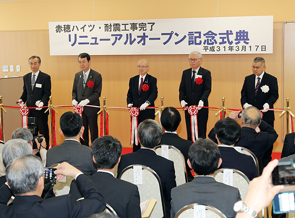 耐震改修完成をテープカットで祝った赤穂ハイツのリニューアルオープン記念式典